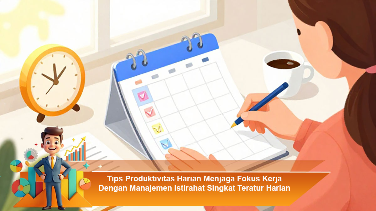 Tips produktivitas harian menjaga fokus kerja dengan manajemen istirahat singkat teratur harian menekankan pentingnya keseimbangan antara kerja dan jeda. Dengan istirahat singkat yang terencana, fokus kerja dapat dipertahankan, kelelahan mental dapat dikurangi, dan kualitas pekerjaan meningkat. Pendekatan ini membantu menciptakan produktivitas yang konsisten, nyaman, dan berkelanjutan dalam aktivitas sehari hari.